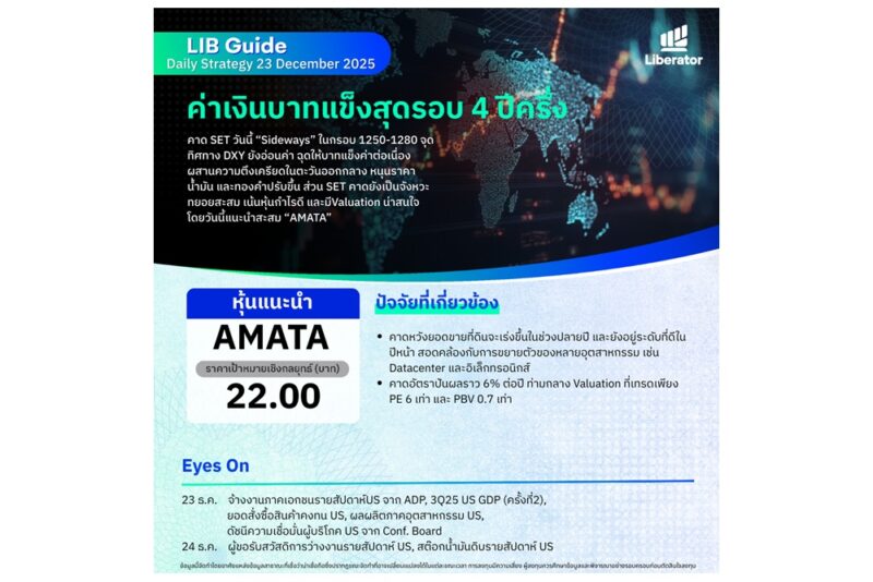บทวิเคราะห์ “LIB Guide Daily Strategy” ประจำวันพฤหัสที่ 25 ธันวาคม 2568 หัวข้อ “ติดตามยอดส่งออกไทย” adminธันวาคม 25, 20250